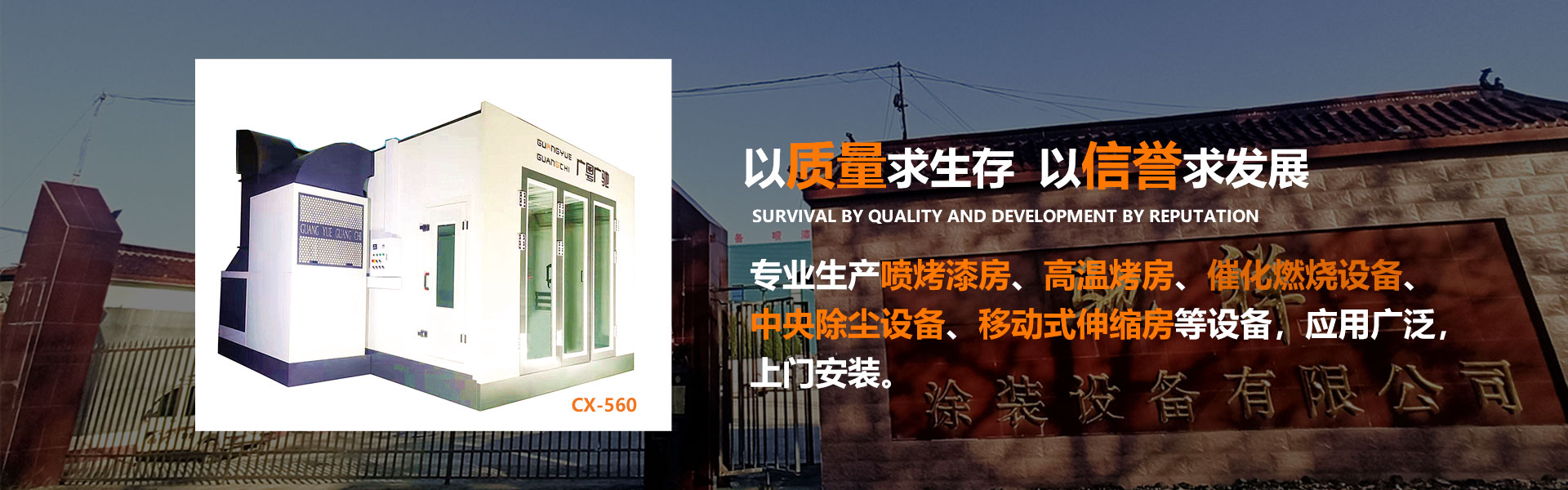 公司主要生產汽車噴烤漆房、家具噴烤漆房、高溫烤房、移動式伸縮房、涂裝設備、光氧廢氣處理設備、粉塵一體化處理設備等環保設備,公司具有多年的豐富的實踐經驗,獨特的技術和專業化的生產設備,完成了眾多技術含量高,質量可靠,效果優異的工程,也可根據用戶需要進行更加符合客戶要求的改造安裝。